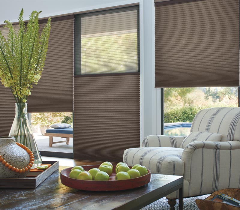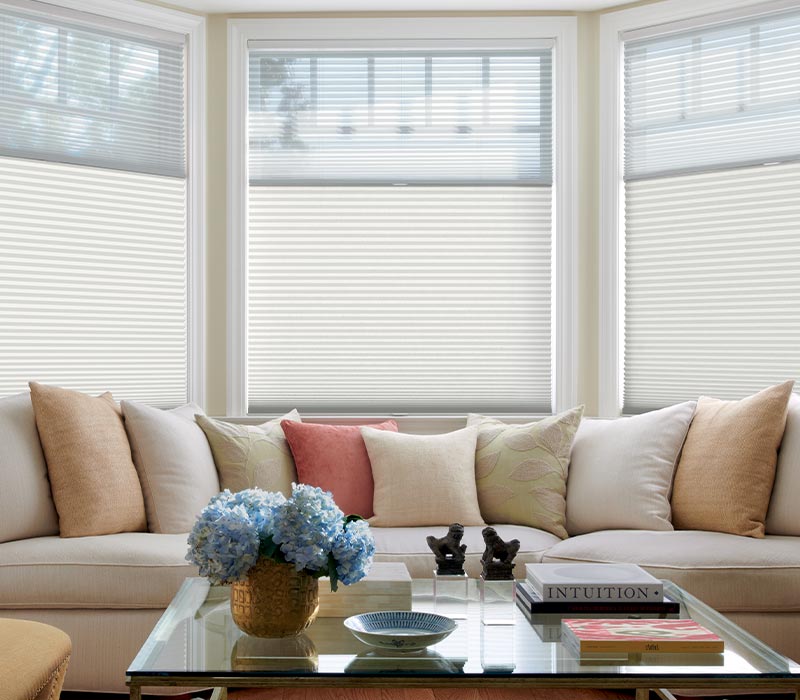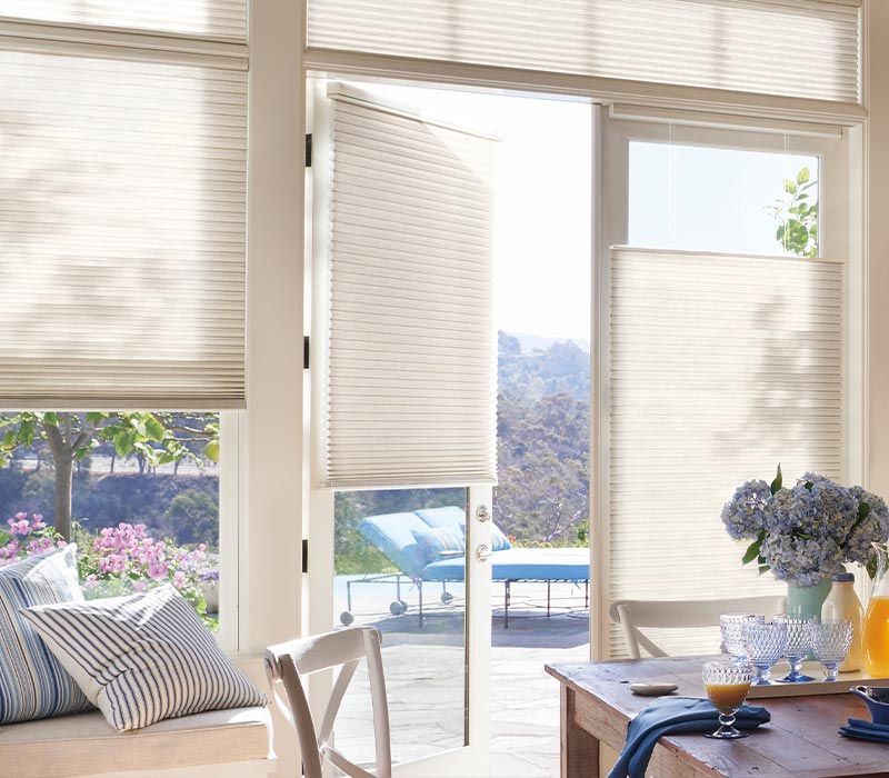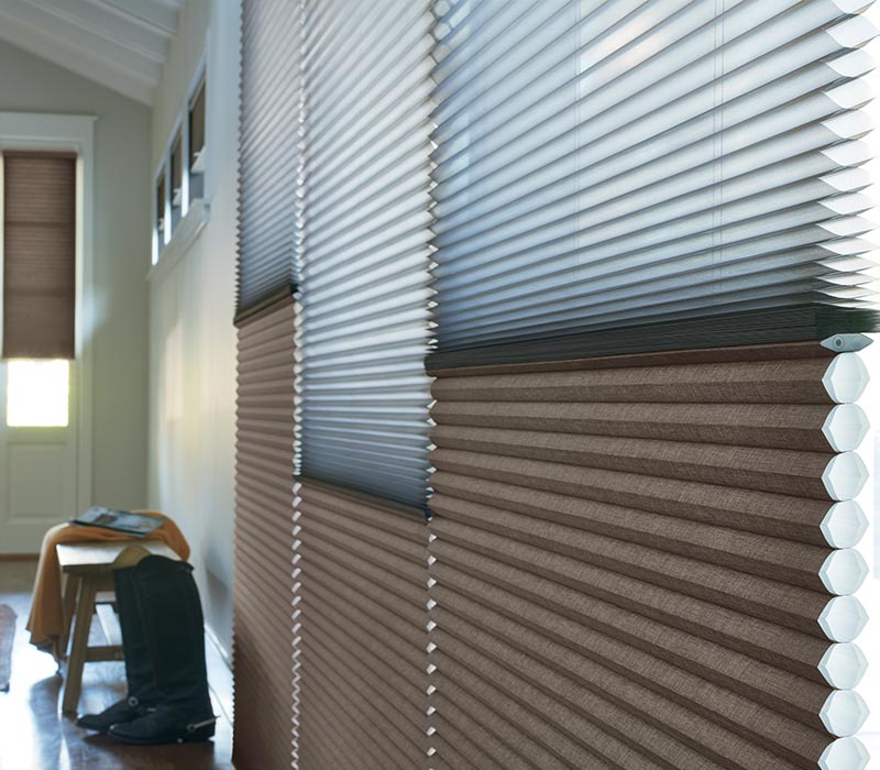 The Duette® Honeycomb Shades feature energy-efficient design in a wide array of fabrics, pleat sizes, colors and textures. The innovative cellular construction traps air in distinct pockets to help keep your house cool in the summer and warm in the winter.